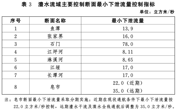 (三)最小下泄流量指標(biāo)考慮河道生態(tài)基流和下游生活、工業(yè)、灌溉等用水需求,確定澧水流域主要斷面最小下泄流量指標(biāo),見表3。