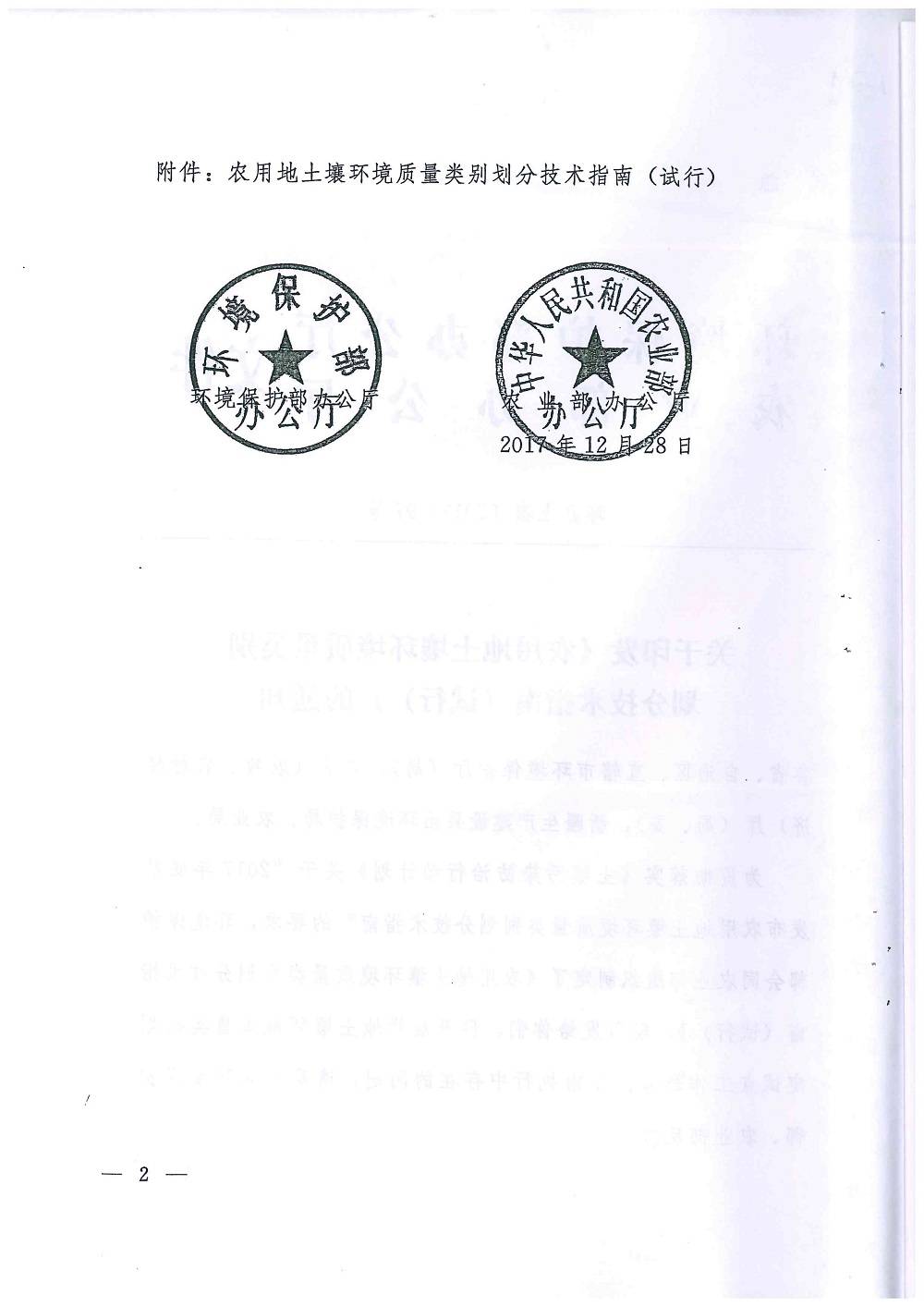 環(huán)辦土壤〔2017〕97號(hào) 關(guān)于《農(nóng)用地土壤環(huán)境質(zhì)量類(lèi)別劃分技術(shù)指南(試行)》的通知