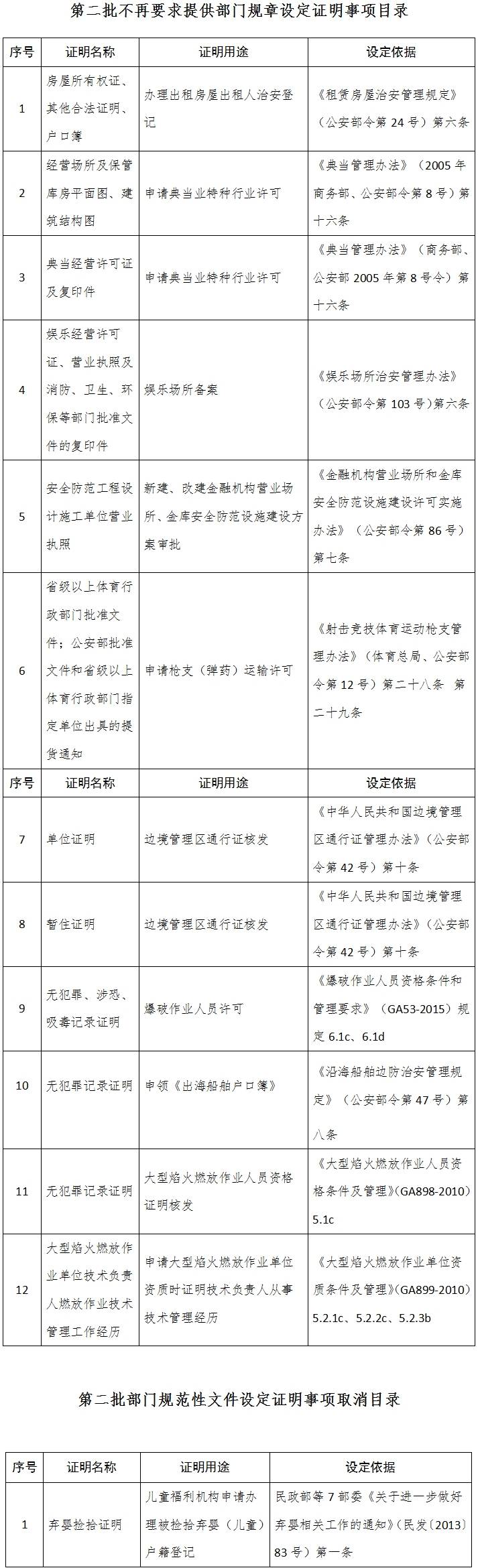 公安部關(guān)于第二批不再要求提供有關(guān)規(guī)章設(shè)定證明事項和取消有關(guān)規(guī)范性文件設(shè)定證明事項的通知