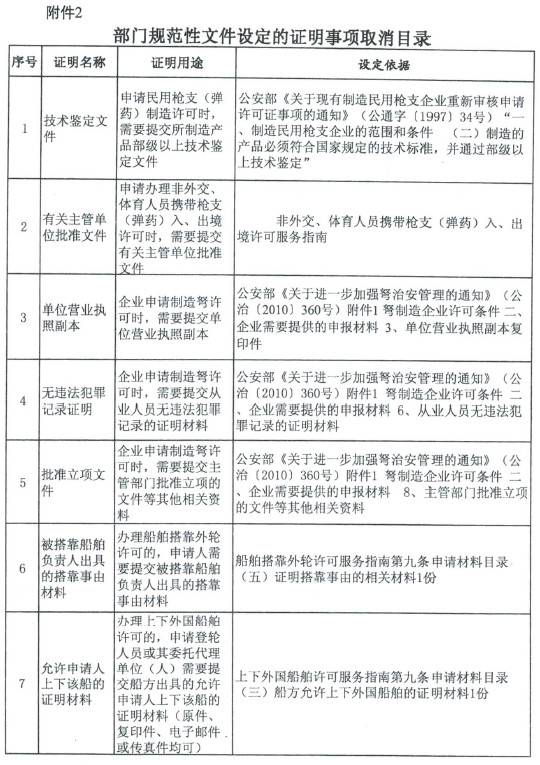 公安部關(guān)于不再要求提供有關(guān)規(guī)章設(shè)定證明事項和取消有關(guān)規(guī)范性文件設(shè)定證明事項的通知