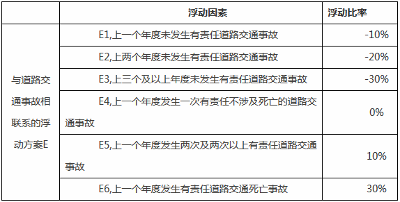 三、交強(qiáng)險(xiǎn)費(fèi)率浮動(dòng)因素及比率如下: