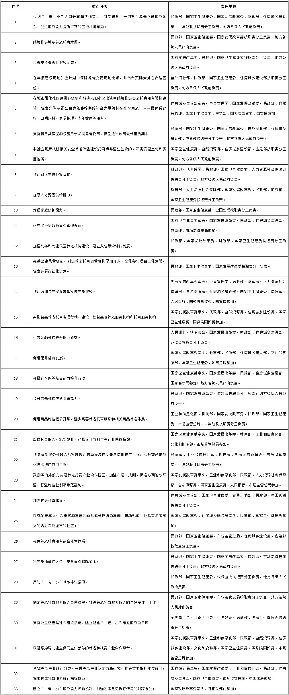 促進(jìn)養(yǎng)老托育服務(wù)健康發(fā)展重點(diǎn)任務(wù)分工表