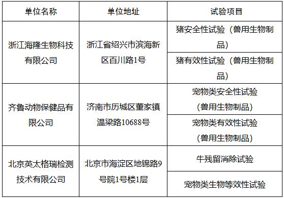 符合獸藥臨床試驗質(zhì)量管理規(guī)范要求的單位和試驗項目