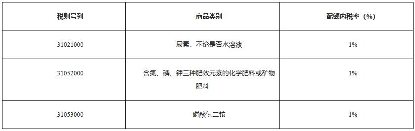 1. 化肥進(jìn)口關(guān)稅配額管理稅目、稅率表