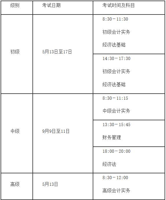 會計資格考試時間、批次如有調(diào)整,將另行通知。
