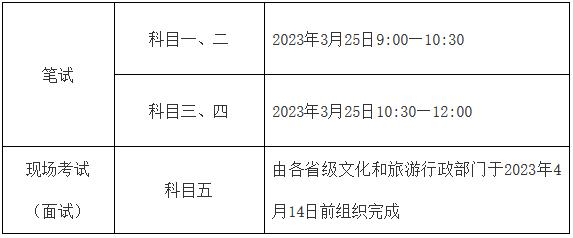 2022年全國(guó)導(dǎo)游資格考試延期考區(qū)的統(tǒng)一筆試時(shí)間為2023年3月25日(周六),相關(guān)省級(jí)文化和旅游行政部門須于2023年4月14日前完成現(xiàn)場(chǎng)考試(面試)工作并報(bào)送成績(jī)。