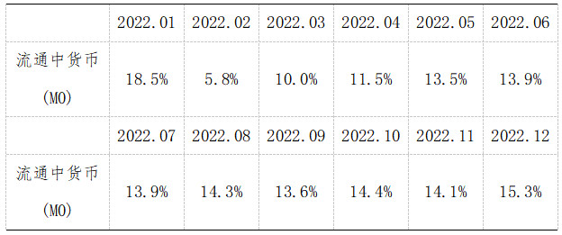 注4:自2022年12月起,“流通中貨幣(M0)”含流通中數(shù)字人民幣。12月末流通中數(shù)字人民幣余額為136.1億元。修訂后,2022年各月末M1、M2增速無(wú)明顯變化。修訂后M0增速如下: