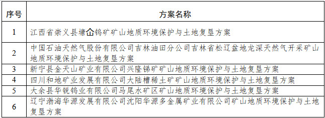 自然資源部關(guān)于江西省崇義縣塘仚鎢礦等6個礦山地質(zhì)環(huán)境保護(hù)與土地復(fù)墾方案通過審查的公告
