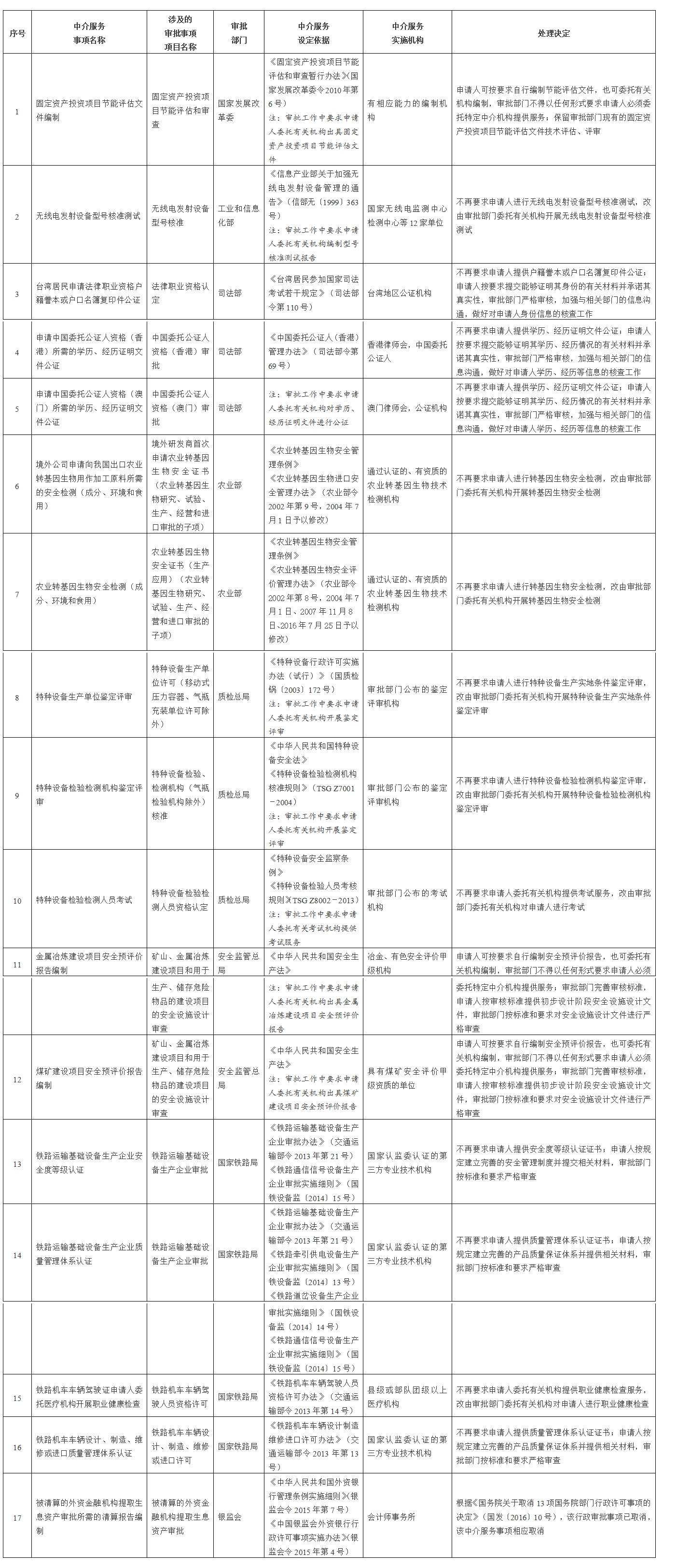 經(jīng)研究論證,國(guó)務(wù)院決定第三批清理規(guī)范17項(xiàng)國(guó)務(wù)院部門行政審批中介服務(wù)事項(xiàng),不再作為行政審批的受理?xiàng)l件。另有2項(xiàng)涉及修改法律的中介服務(wù)事項(xiàng),國(guó)務(wù)院將依照法定程序提請(qǐng)全國(guó)人民代表大會(huì)常務(wù)委員會(huì)修訂相關(guān)法律規(guī)定;另有1項(xiàng)涉及修改《內(nèi)地與香港關(guān)于建立更緊密經(jīng)貿(mào)關(guān)系的安排》和《內(nèi)地與澳門關(guān)于建立更緊密經(jīng)貿(mào)關(guān)系的安排》的中介服務(wù)事項(xiàng),國(guó)務(wù)院有關(guān)部門將按程序與香港、澳門特別行政區(qū)政府磋商,修改補(bǔ)充相關(guān)安排。