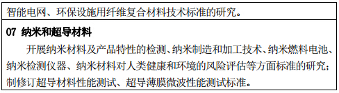 加強(qiáng)稀土功能材料、高性能膜材料、特種玻璃、功能陶瓷、半導(dǎo)體材料、高品質(zhì)特殊鋼、新型合金材料、工程塑料、高性能纖維及其復(fù)合材料、納米材料、超導(dǎo)材料等領(lǐng)域標(biāo)準(zhǔn)及標(biāo)準(zhǔn)樣品的研究,構(gòu)建新材料產(chǎn)業(yè)標(biāo)準(zhǔn)體系,引領(lǐng)和支撐新材料的設(shè)計(jì)、制備加工、高效利用、安全服役和低成本循環(huán)再利用,促進(jìn)材料高性能化、輕量化和綠色化。
