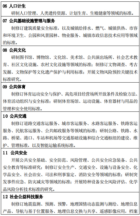 按照創(chuàng)新社會(huì)管理,推進(jìn)基本公共服務(wù)均等化的要求,大力開展公共教育、就業(yè)服務(wù)、社會(huì)保險(xiǎn)、基本社會(huì)服務(wù)、公共醫(yī)療衛(wèi)生、人口計(jì)生、公共基礎(chǔ)設(shè)施管理與服務(wù)、公共文化、公共交通、公共安全以及社會(huì)公益科技服務(wù)等領(lǐng)域的標(biāo)準(zhǔn)研究,制修訂800項(xiàng)與人民生活密切相關(guān)的服務(wù)安全和質(zhì)量標(biāo)準(zhǔn),建立社會(huì)管理和公共服務(wù)標(biāo)準(zhǔn)體系。加強(qiáng)標(biāo)準(zhǔn)實(shí)施與監(jiān)督,加大社會(huì)管理和公共服務(wù)重要基礎(chǔ)標(biāo)準(zhǔn)、強(qiáng)制性標(biāo)準(zhǔn)的宣貫力度,選擇300個(gè)具有明顯資源優(yōu)勢、區(qū)域優(yōu)勢的省、市、縣,開展社會(huì)管理和公共服務(wù)標(biāo)準(zhǔn)化試點(diǎn),使標(biāo)準(zhǔn)成為提高社會(huì)管理與公共服務(wù)質(zhì)量和政府服務(wù)績效的有效手段,促進(jìn)社會(huì)管理與公共服務(wù)水平的提升。