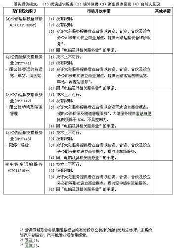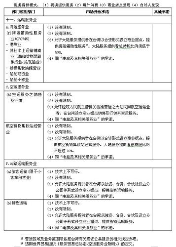 (六)雙方有關海運協(xié)議的相關措施,但不包括《海峽兩岸經(jīng)濟合作框架協(xié)議》及其后續(xù)協(xié)議項下的服務貿(mào)易市場開放承諾表所列措施;