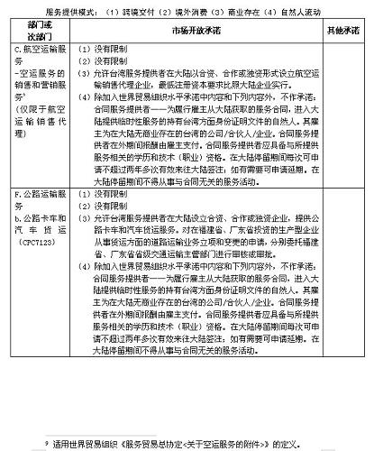 (五)與兩岸間航空運輸安排的行使直接有關的服務,但不包括《海峽兩岸經(jīng)濟合作框架協(xié)議》及其后續(xù)協(xié)議項下的服務貿(mào)易市場開放承諾表所列措施;