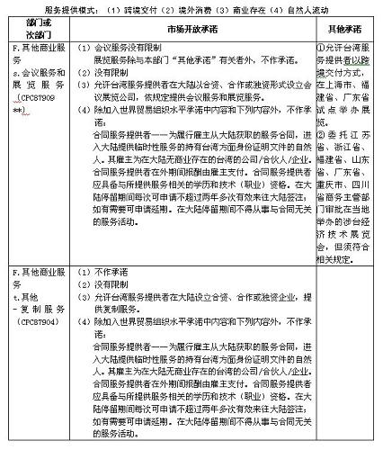四、本協(xié)議附件一及《海峽兩岸經(jīng)濟合作框架協(xié)議》附件四所列服務部門及市場開放承諾適用本協(xié)議附件二關于服務提供者的具體規(guī)定。