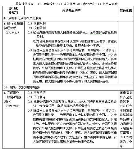 雙方同意,關于本協(xié)議附件一和《海峽兩岸經(jīng)濟合作框架協(xié)議》附件四所列并超出各自在世界貿(mào)易組織承諾的服務部門及市場開放承諾中的服務提供者(注19),具體規(guī)定如下: