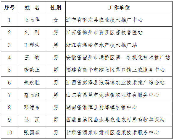 “全國十佳農(nóng)技推廣標兵”2019年度資助項目人選名單