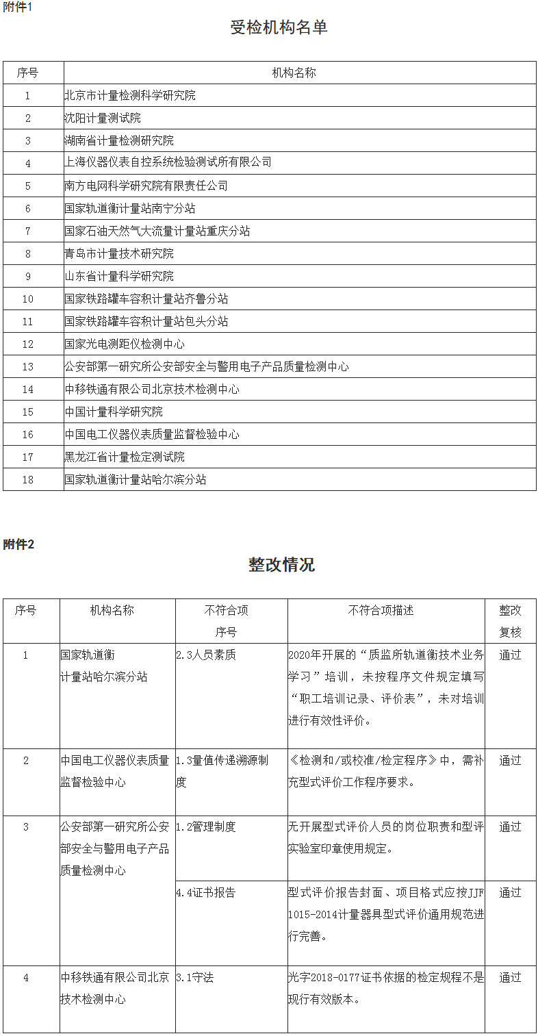 市場監(jiān)管總局關(guān)于2020年度法定計量檢定機構(gòu)專項監(jiān)督檢查情況的通告