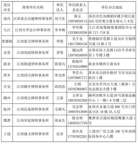 附件:江西省企業(yè)破產(chǎn)管理人協(xié)會設(shè)區(qū)市聯(lián)系對接理事單位及聯(lián)系人名冊