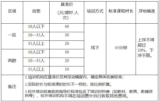 為深入貫徹落實(shí)“雙減”政策,規(guī)范義務(wù)教育階段學(xué)科類校外培訓(xùn)收費(fèi)行為,根據(jù)《中共中央辦公廳國(guó)務(wù)院辦公廳印發(fā)〈關(guān)于進(jìn)一步減輕義務(wù)教育階段學(xué)生作業(yè)負(fù)擔(dān)和校外培訓(xùn)負(fù)擔(dān)的意見〉的通知》(中辦發(fā)〔2021〕40號(hào))、《國(guó)家發(fā)展改革委教育部市場(chǎng)監(jiān)管總局關(guān)于加強(qiáng)義務(wù)教育階段學(xué)科類校外培訓(xùn)收費(fèi)監(jiān)管的通知》(發(fā)改價(jià)格〔2021〕1279號(hào))、《中共重慶市委辦公廳重慶市人民政府辦公廳關(guān)于印發(fā)〈重慶市進(jìn)一步減輕義務(wù)教育階段學(xué)生作業(yè)負(fù)擔(dān)和校外培訓(xùn)負(fù)擔(dān)工作方案〉的通知》(渝委辦發(fā)〔2021〕36號(hào))等規(guī)定,結(jié)合我市實(shí)際,現(xiàn)就義務(wù)教育階段線下學(xué)科類校外培訓(xùn)收費(fèi)有關(guān)事項(xiàng)通知如下。