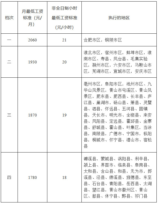 安徽省人民政府辦公廳關(guān)于調(diào)整全省最低工資標(biāo)準(zhǔn)的通知
