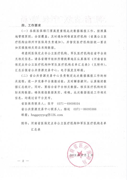 豫醫(yī)保辦函〔2019〕10號(hào)《河南省醫(yī)療保障局關(guān)于做好我省國(guó)家組織藥品集中采購(gòu)和使用試點(diǎn)相關(guān)藥品采購(gòu)數(shù)據(jù)填報(bào)工作的通知》