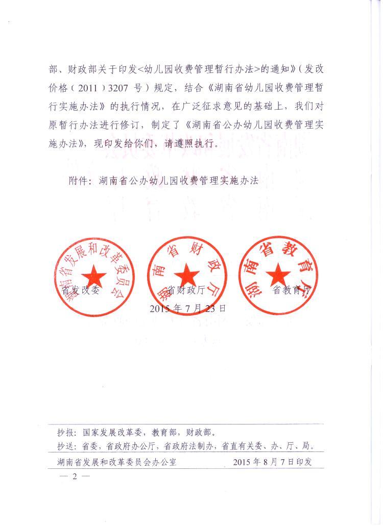 《湖南省發(fā)展和改革委員會湖南省財政廳湖南省教育廳關(guān)于印發(fā)〈湖南省公辦幼兒園收費管理實施辦法〉的通知》