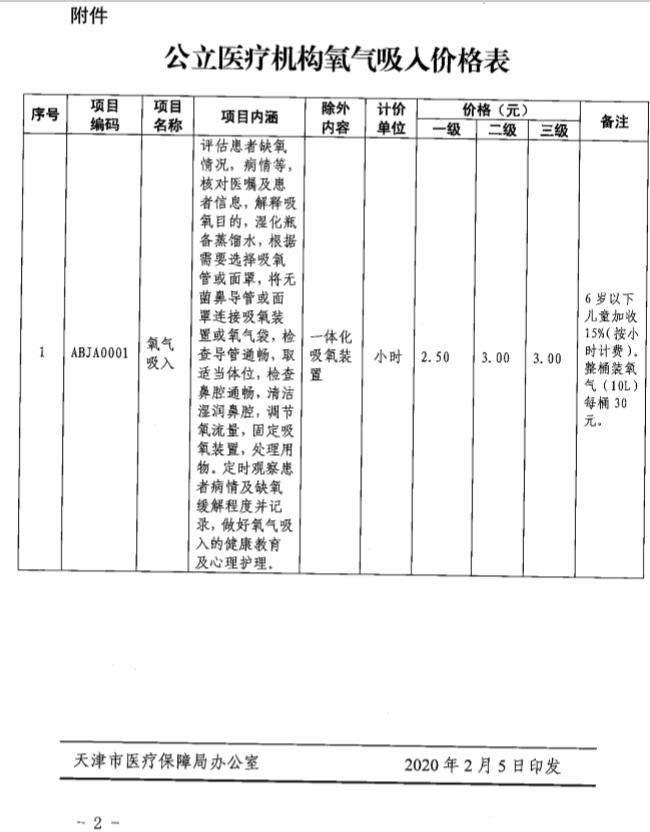 津醫(yī)保局發(fā)〔2020〕8號《天津市醫(yī)療保障局天津市衛(wèi)生健康委員會關(guān)于規(guī)范公立醫(yī)療機(jī)構(gòu)氧氣吸入價(jià)格政策的通知》