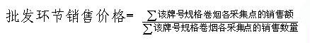 第十一條 卷煙批發(fā)環(huán)節(jié)銷售價格,按照稅務(wù)機關(guān)采集的所有卷煙批發(fā)企業(yè)在價格采集期內(nèi)銷售的該牌號、規(guī)格卷煙的數(shù)量、銷售額進行加權(quán)平均計算。計算公式為: