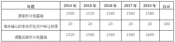 甲公司2014年—2018年該項(xiàng)股權(quán)的計(jì)稅基礎(chǔ)調(diào)整計(jì)算如下(單位:萬元)
