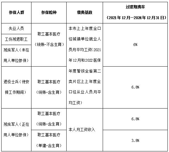 | 人員類別 | 2021年12月前參保繳費情況(不含門診醫(yī)療) | 2021年12月后參保繳費操作指南 | 備注 | |