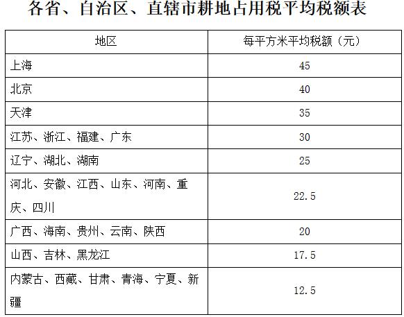 第六條 各省、自治區(qū)、直轄市耕地占用稅的平均稅額,按照本細(xì)則所附的《各省、自治區(qū)、直轄市耕地占用稅平均稅額表》執(zhí)行。
